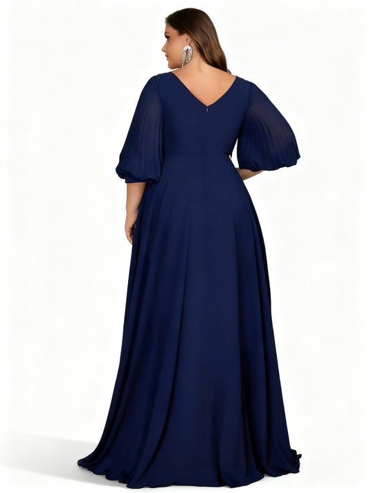 Stalluxe | Schickes Marineblaues Chiffon Abendkleid mit V-Ausschnitt in Übergröße