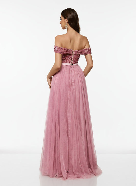 Stalluxe | Romantisches Schulterfreies Pailletten-Abendkleid mit Hohem Schlitz