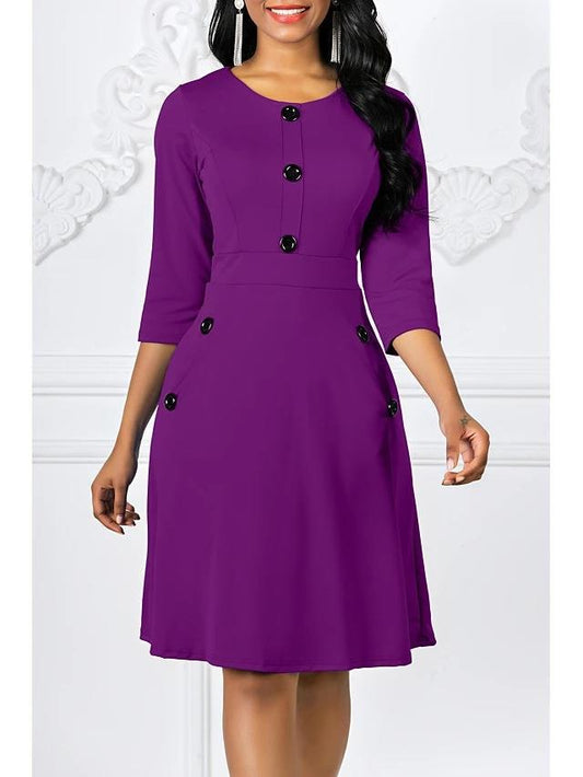 Women's Classic Three-Quarter Sleeve Button-Detail Dress Stalluxe