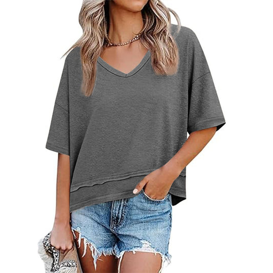 Women's Casual V-Neck Oversized Tee Stalluxe