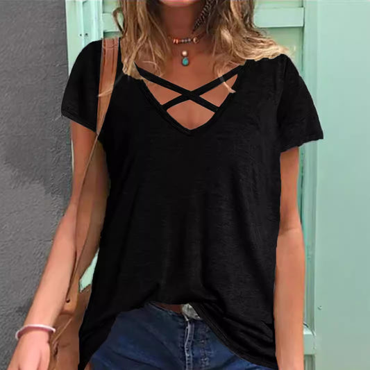 Women's Crisscross V-Neck Casual Tee Stalluxe