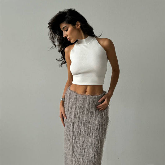 Damen eleganter Wickel-Oberteil und Maxi-Rock mit schimmernden Akzenten Stalluxe