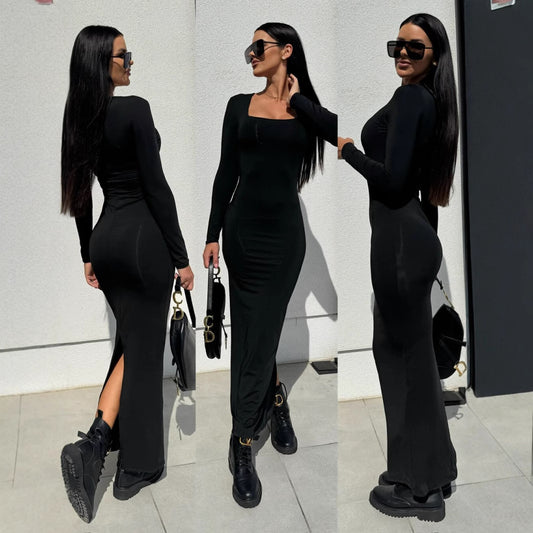 Damen Elegantes langärmliges Maxikleid mit figurbetontem Schnitt Stalluxe