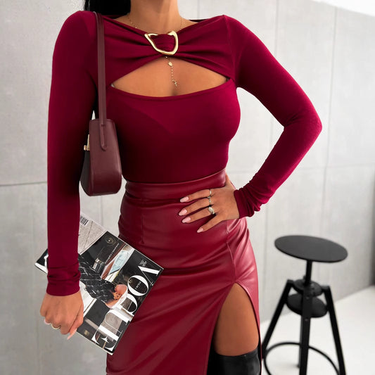 Damen Elegantes Oberteil mit innovativem Cut-Out und langen Ärmeln Stalluxe