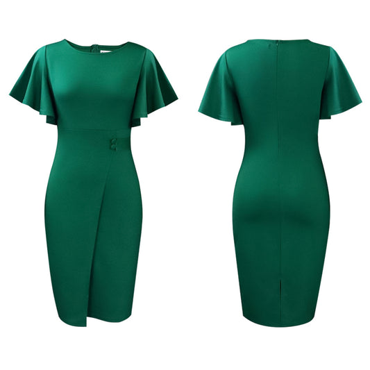 Damen Etuikleid mit asymmetrischen Falten und elegantem Schlitz Stalluxe