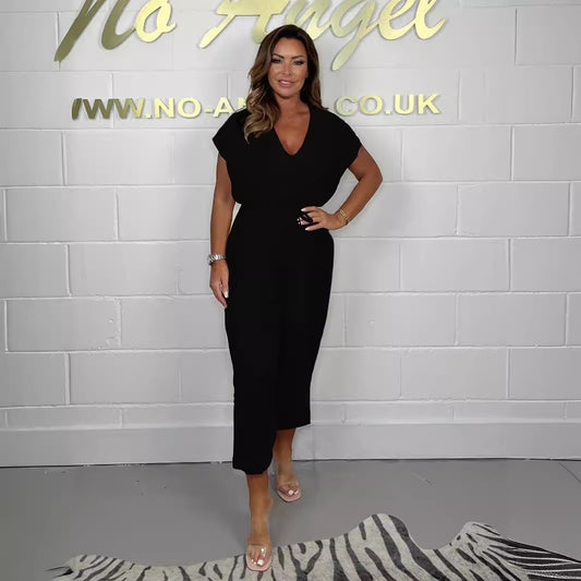 Damen Elegante Overall mit schickem V-Ausschnitt und lässigen Halbärmeln Stalluxe