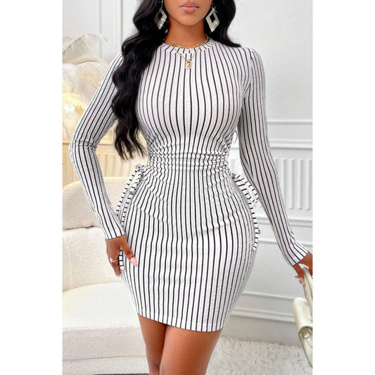 Damen Figurbetontes Kleid mit Raffung und Streifenmuster Stalluxe
