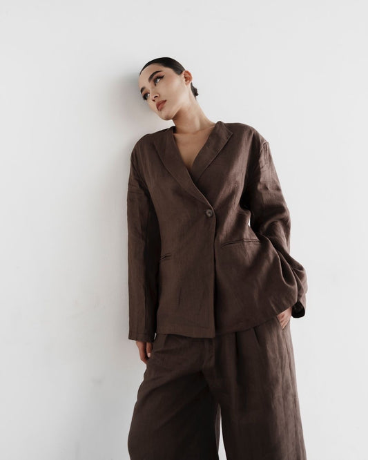 Damen elegantes Leinenanzug-Set mit langärmliger Jacke und weitem Schnitt Stalluxe