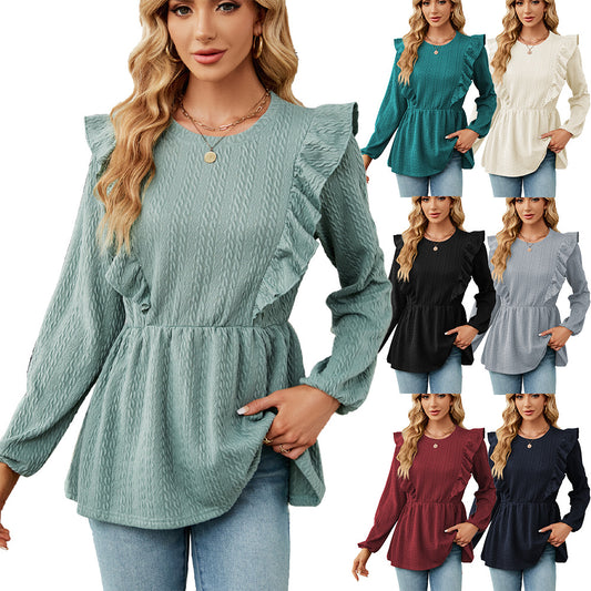Damen trendiges Blusenshirt mit Rüschendetails und elastischem Bund Stalluxe