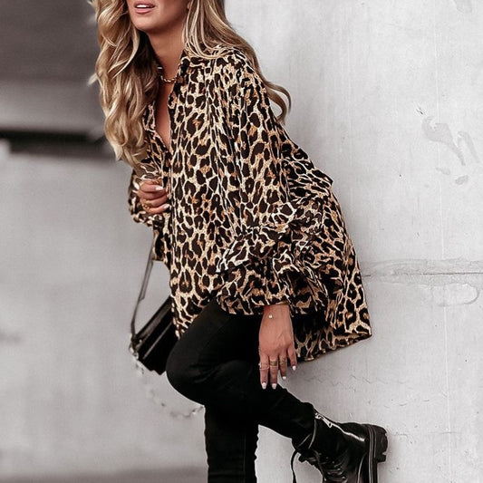Damen Bluse mit Rüschendetails und modernem Leopardenmuster Stalluxe