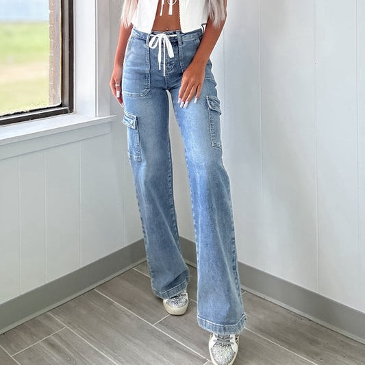 Damen Cargo-Jeans mit weiten Beinen und praktischen Taschen Stalluxe