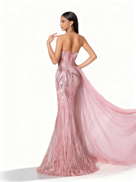 Stalluxe | Rosa Paillettenkleid ohne Träger mit Hohem Schlitz