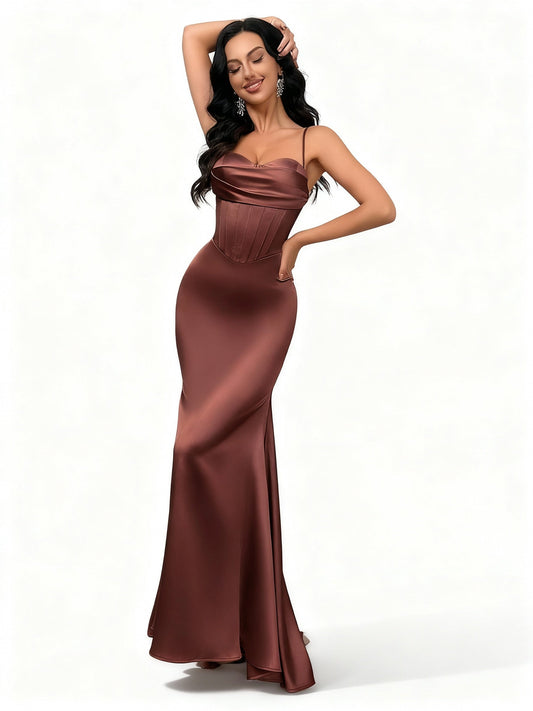 Stalluxe | Satinkleid mit Spaghettiträgern und Halterneck