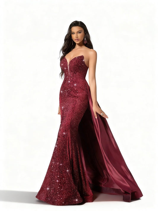 Stalluxe | Burgunderfarbenes Paillettenkleid mit Trägerlosem Ausschnitt