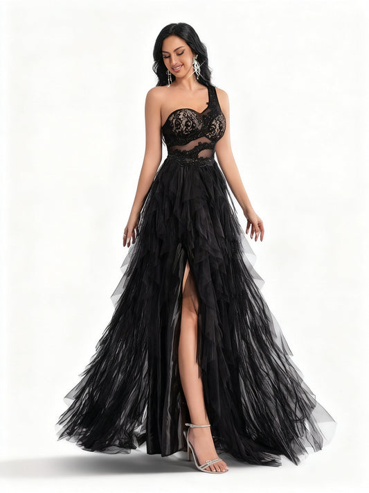 Stalluxe | Einseitiges Spitzen-Mesh-Abendkleid