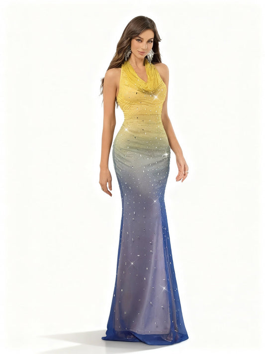 Stalluxe | Halter Multicolor Strass-Abendkleid