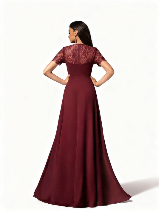 Stalluxe | Burgunderfarbenes Spitzenkleid mit Herz-Ausschnitt und Twist