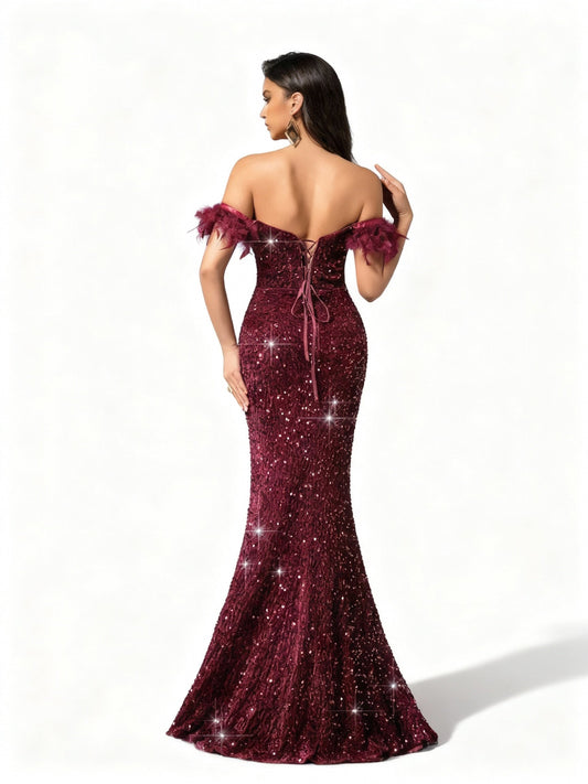 Stalluxe | Burgunderfarbenes One-Shoulder-Paillettenkleid mit Schlitz