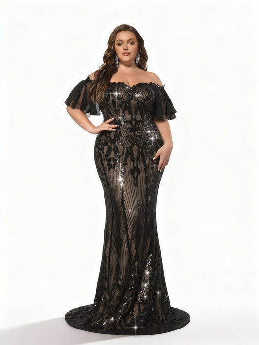 Stalluxe | Glänzendes Abendkleid mit Perlen für Damen in Übergröße