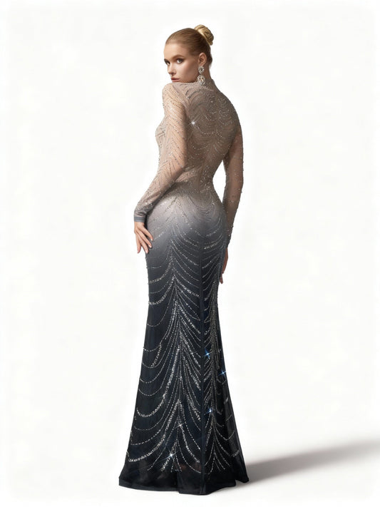 Stalluxe | Abendkleid mit Farbverlauf, Strass und Stehkragen