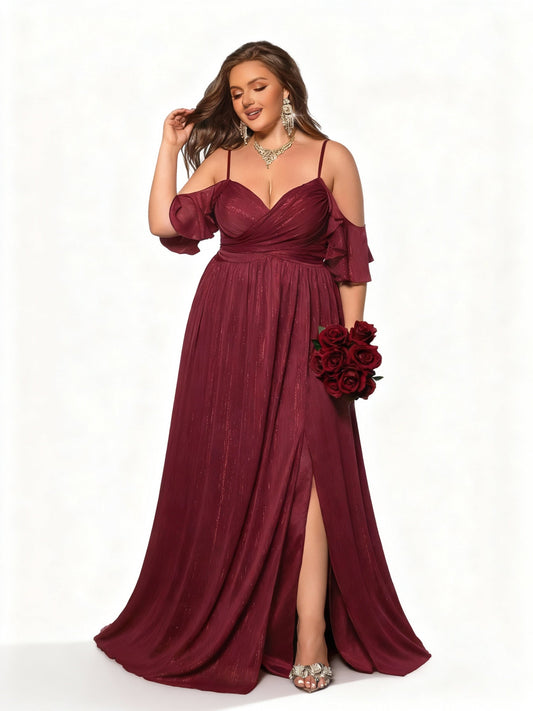 Stalluxe | Burgunderfarbenes Trägerloses Spitzenkleid für Brautjungfern in Übergröße