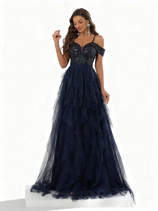 Stalluxe | Raffiniertes Marineblaues Abendkleid mit Strass und Meerjungfrauen-Saum