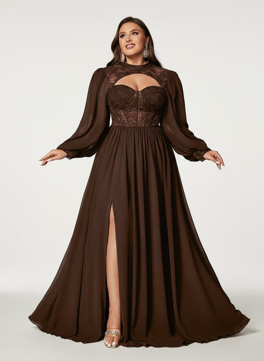 Stalluxe | Anmutiges Chiffon-Abendkleid mit Spitzenoberteil und Langarm