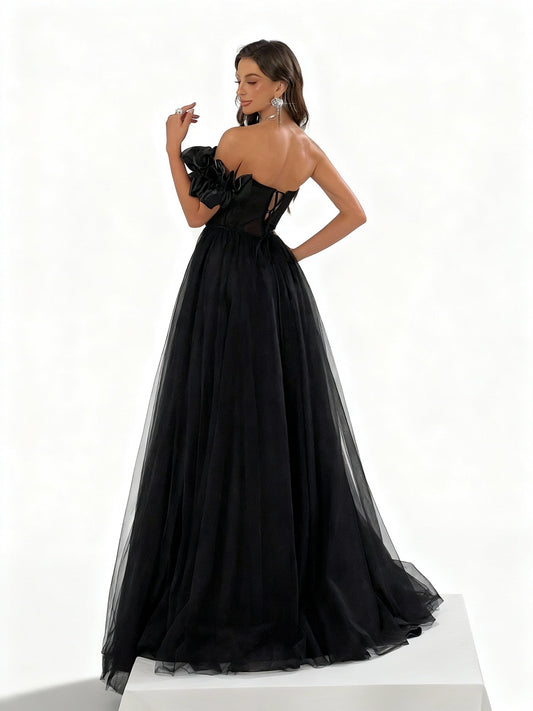 Sovaae | Glamouröses Schwarzes Pailletten-Abendkleid in Übergröße mit Trägerlosem Design