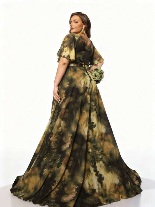 Stalluxe | Stilvolles Grünes Batik-Abendkleid in Übergröße mit V-Ausschnitt