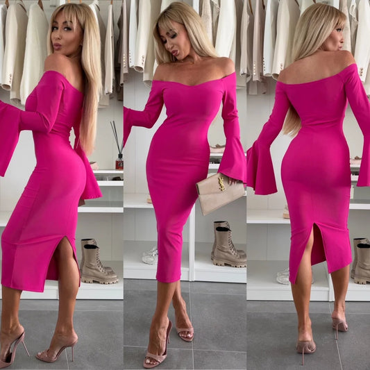 Damen Figurbetontes Kleid mit schulterfreien Ärmeln und ausgestellten Manschetten Stalluxe