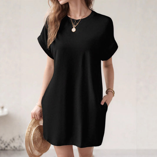Damen lässiges T-Shirt Kleid mit tiefen Seitentaschen und bequemem Schnitt Stalluxe