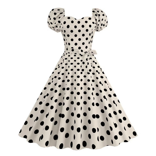 Damen Freizeitkleid mit Puffärmeln und verspieltem Polka-Dots Muster Stalluxe
