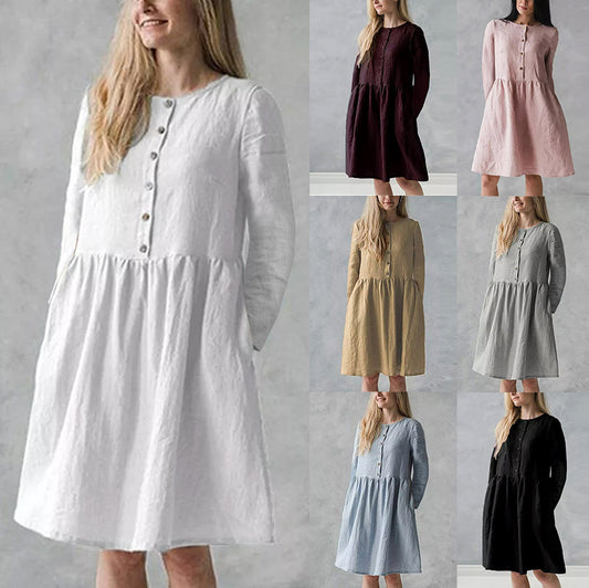 Damen lässiges Freizeitkleid mit Knopfverschluss und voluminösem Rock Stalluxe