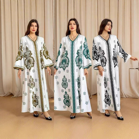 Damen Kaftan-Kleid mit kunstvollem Motiv und lockerer Passform Stalluxe