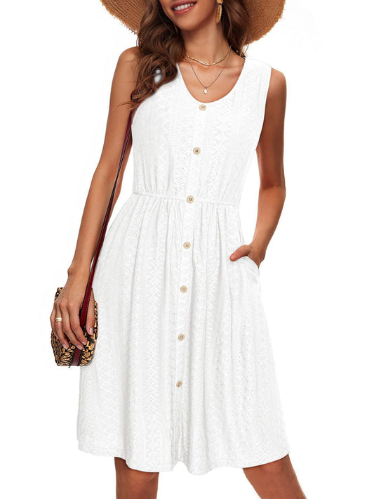 Damen Sommerliches Knopfkleid mit elastischem Taillenband und praktischen Taschen Stalluxe