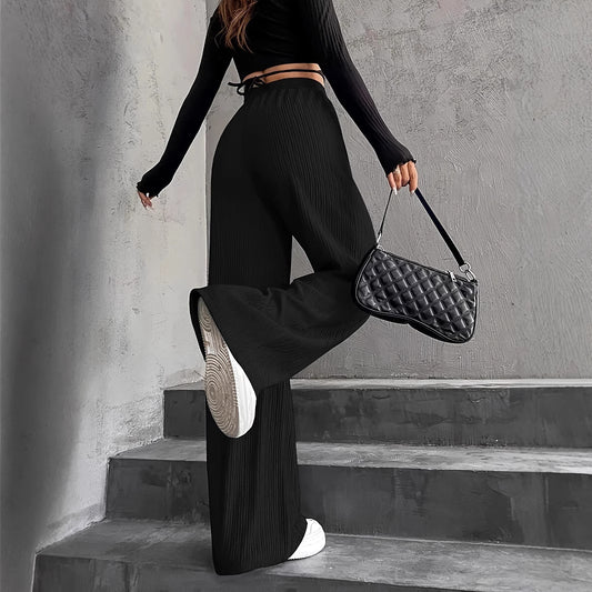 Damen weite Lounge-Hose mit elastischem Bund und Plissees Stalluxe