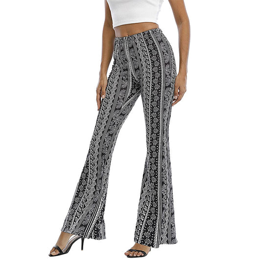 Damen Schlaghose mit geflochtenem Ethno-Muster und hohem Bund Stalluxe