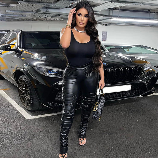 Damen Kunstleder Jogginghose mit elastischem Bund und seitlichen Taschen Stalluxe