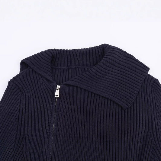 Damen modische Strickjacke mit breitem Kragen und asymmetrischem Reißverschluss Stalluxe