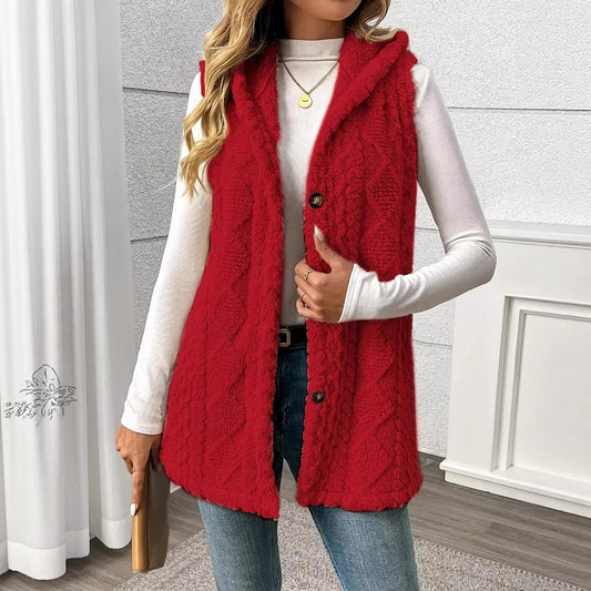 Damen kuschelige Weste mit Kapuze und strukturiertem Design Stalluxe