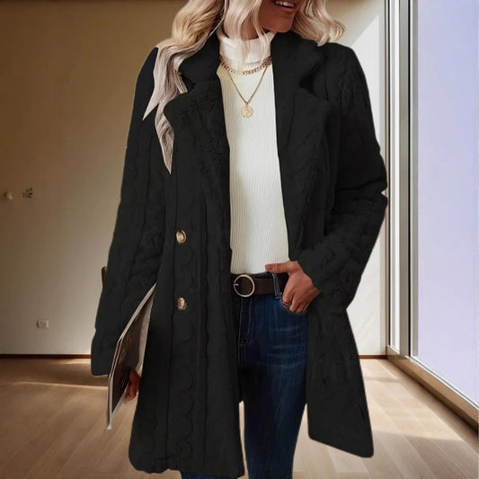 Damen Plüschmantel mit strukturiertem Design und großen Knöpfen Stalluxe