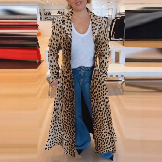 Damen eleganter Mantel im Leo-Design mit luxuriösem Fellkragen Stalluxe
