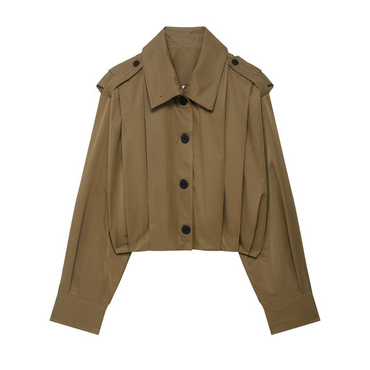 Damen cropped Blousonjacke mit elegantem Stehkragen und Knopfverschluss Stalluxe