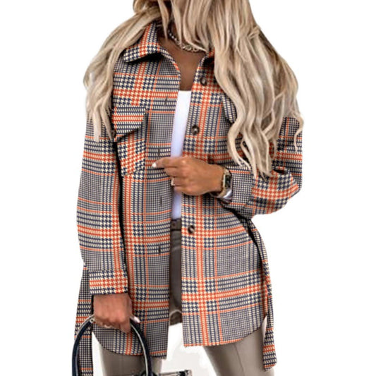 Damen Karomuster Oversized Hemdjacke Stalluxe