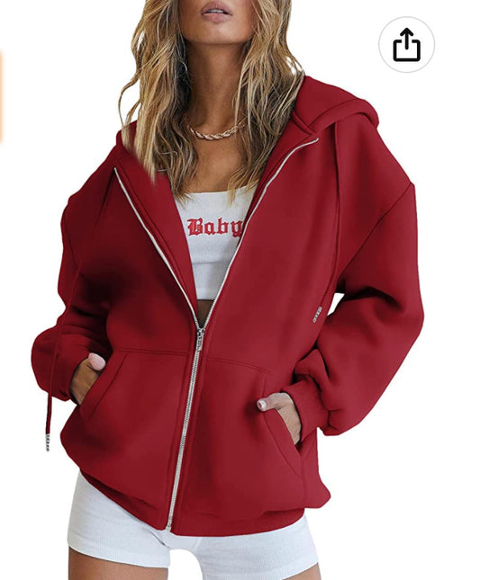 Damen Oversized Kapuzenjacke mit Reißverschluss und praktischen Taschen Stalluxe