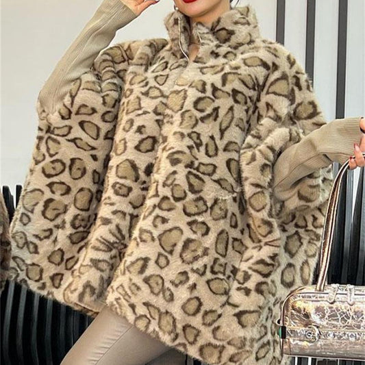 Damen Kuschel-Fleece-Poncho im Leopardenmuster Stalluxe