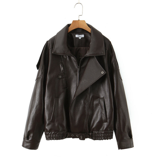 Damen modische Kunstlederjacke mit tailliertem Schnitt und breitem Revers Stalluxe