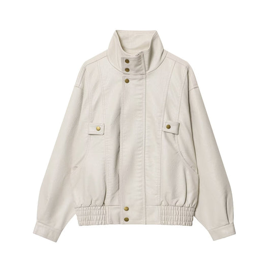 Damen modische Kunstlederjacke mit hohen Kragen und praktischen Knopfdetails Stalluxe