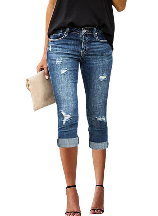 Damen Capri-Jeans mit Destroyed-Optik Stalluxe