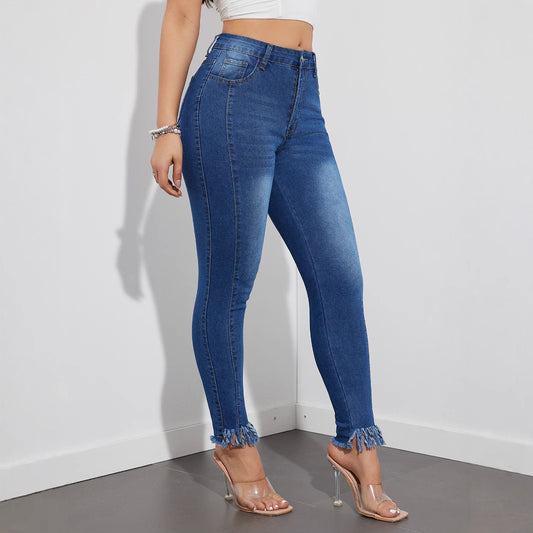 Damen Skinny-Jeans mit fransigem Saum und hoher Taille Stalluxe